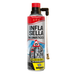 Nota: en rodados pequeños como motos, bicicletas, etc. no es necesario utilizar el contenido completo del envase. Desconectar el aerosol e inmediatamente poner en marcha el vehículo a velocidad moderada durante 2 o 3 km. para que el compuesto sellador se reparta uniformemente y obture completamente la pinchadura.